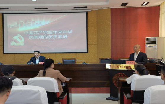 委员会邀请杨昌儒教授作《中国共产党百年来中华民族观的历史演进》党史学习教育专题宣讲,讲座由董强院长主持,民历学院全体师生党员参加。
