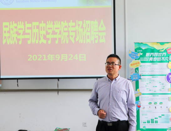 于2021年9月24日下午2点在15-104教室,携手链家集团共同举办了秋季校园专场招聘会。此次招聘宣讲会主要面向2018级毕业生以及其他有意愿的学生。民历学院党委副书记李浩、辅导员聂开吉出席本次活动。