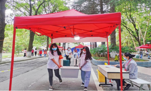 终于迎来了新生开学季。历史学学生党支部党员与学校党员求是班党员一起组成党员志愿服务队,在行政楼前开展2022级迎新活动。