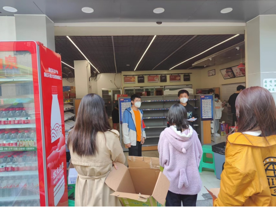 在这无声的战役场上,志愿者们全力配合学校开展疫情防控工作:协助学校保卫处值守学校周围存在安全隐患的路口、协助学校后勤处搬运防疫物资、协助校团委维护好全员核酸检测秩序、协助抓好食堂就餐以及超市购物的现场秩序、协助送水公司发放桶装水,并帮助同学们搬水到宿舍……只要哪里需要他们,一声号令立即抵达。至今,该批志愿者已经连续工作10天。当唐书记询问大家有没有什么困难、是否需要换人?大家斩钉截铁的回答:一切都能克服。