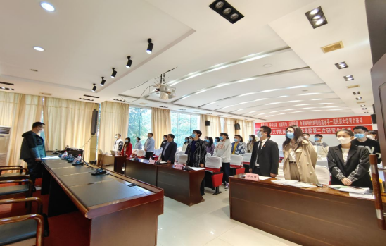 团委负责人聂开吉老师主持。参加此次会议的还有第三届研会主席团成员韩国祥、王一帆、欧阳琳洁,第四届主席团候选人翁建平、赵旭、刘雪(线上)、邹小丽和24名研究生代表大会代表。