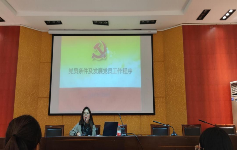 花溪校区行政楼第五会议室开展第65期入党积极分子培训第一课。课堂围绕“党员条件及发展党员工作程序”主题展开,学院组织员、党委委员何慧琳同志为全体学员授课。