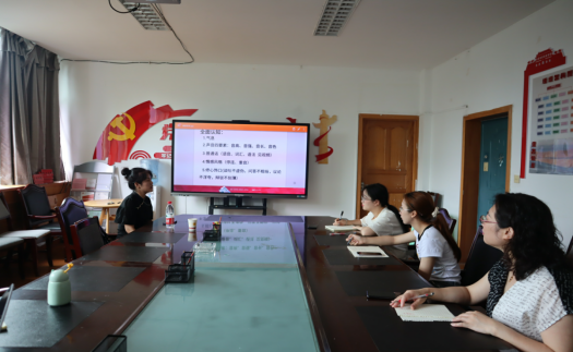 会议伊始,闫洁老师强调推普工作的开展需要具备扎实的专业知识。紧接着闫洁老师从推普的队伍开始讲解,主要由国家语言文字委员会牵头组织推普培训,教育部门、媒体、民间组织进一步落实普通话教学。闫洁老师重点向成员们普及了推普工作的全面认知,主要从气息、声音四要素、普通话、情感风格、修心饰口五个方面作出了专业讲解并向成员们澄清了相关概念,表示普通话不是一个民族的语言,汉语不等同于普通话,主要是为了消除方言隔阂,利于社会交际。