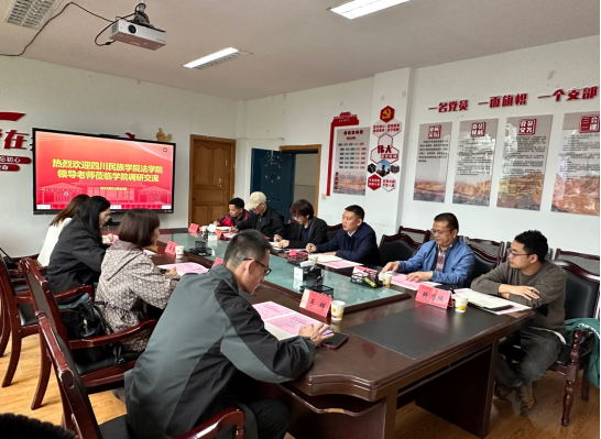 进行调研交流学习。交流会主题为“铸牢中华民族共同体意识的背景下,四川民族学学院法学院的民族学学科的建设与发展”。院长董强,副院长郭国庆,李乔杨教授,周永健教授,杨成教授及韩恩瑞老师参加会议。本次会议由副院长郭国庆主持。