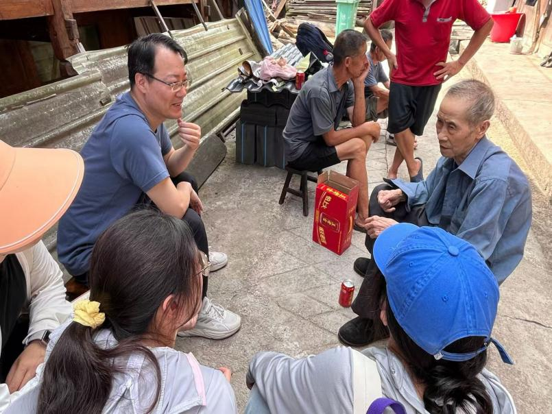 在村干部的指引下,指导老师带团队入户访谈,向村民了解关于报友村的渊源、重大节庆、村名由来及其含义等历史材料。