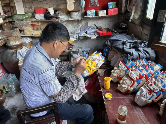 并在其引荐下,实践团拜访了77岁胡姓老艺人,胡爷爷12岁随父学艺的雕刻师,如今仍守着祖传的手艺。尽管一年的销售量不算大,一个月仅能卖出一两千元,一年收入约一两万,大脸子面具售价约600元,但胡爷爷曾参与2008年北京奥运会的相关活动,回忆起这段经历,他满脸自豪。那一刻,我们忽然懂得:老艺人的坚守,是对文化最深沉的告白。
