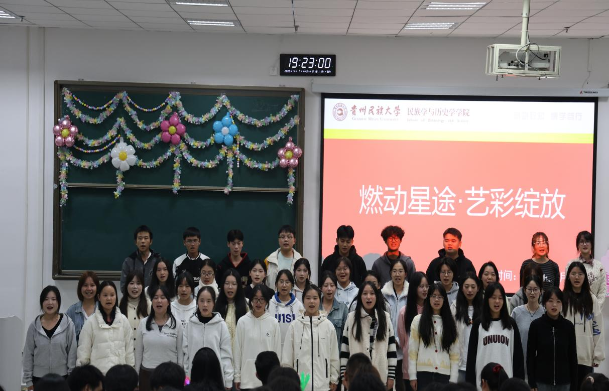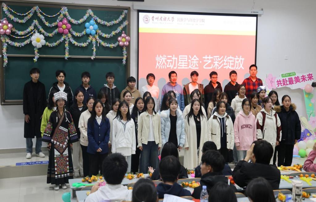 晚会现场暖意融融,张文艳老师、聂开吉老师、刘欢歌老师、王涛老师受邀出席,与2025级历史班、文物与博物馆学班、民族学班、文化产业管理班的全体新生,以及学院团委学生会的全体成员一同落座观看。大家欢聚一堂共同镌刻下属于“民历人”的初遇记忆,让陌生的距离在欢声笑语中悄然消融。