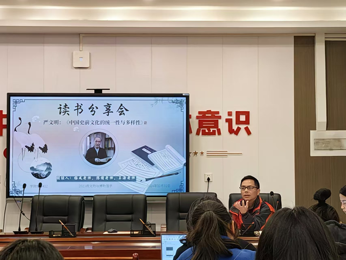 D412成功举行。本次读书会由杨成、陈倩和王涛三位老师领读,王朝阳、杨春艳、王俭、金德谷等老师参与,23级文博本科生、24级文物学研究生、23文产本科生等共计50多位师生参加了本次读书会。读书会以严文明先生《中国史前文化的统一性与多样性》文章为阅读主题,以23文博本科生汇报为主。