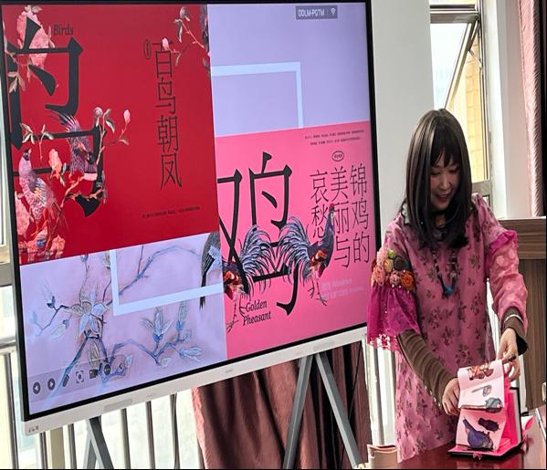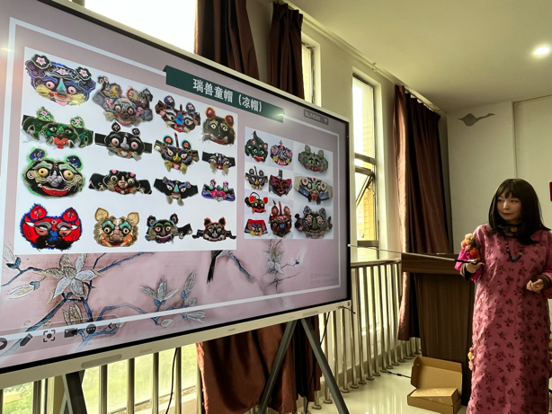 讲座中,张书林老师首先回顾了民间老绣的采集历程,并结合珍贵藏品实物图片进行展示。随后,她围绕蓝色松桃绣、瑞兽(虎头帽)、老云肩、老织锦、马面裙等主题展开释读,从牡丹、荷花、梅花等草木纹样的演变,到龙凤、锦鸡、蝙蝠、瑞兽等纹样的象征意义,深入剖析老绣所承载的民俗信仰、审美意蕴与生活智慧。最后,她分享了个人将老绣应用于当代的传播与利用方式,涵盖书籍出版、艺术展览、艺术创作等多个维度。