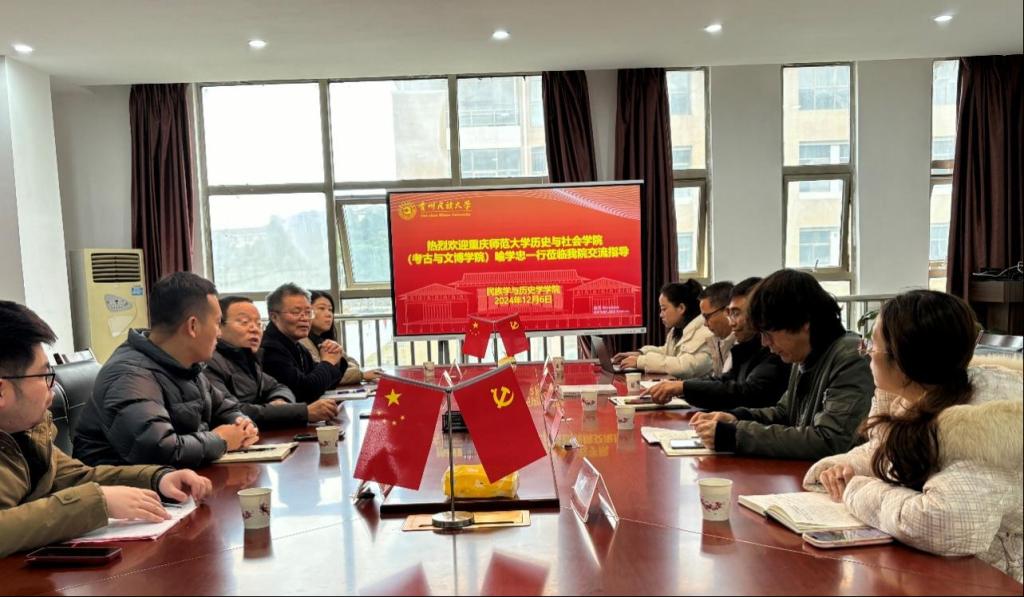 初冬沐暖阳,清风迎客来。为进一步加强院校间的交流与合作,推动教育水平共进双赢,促进学院共同发展,2024年12月6日,重庆师范大学历史与社会学院(考古与文博学院)喻学忠教授等五位教师莅临樱桃视频 开展教育教学交流活动。樱桃视频 叶成勇、郭国庆、杨成、高照晶、王俭五位教师参与交流座谈。