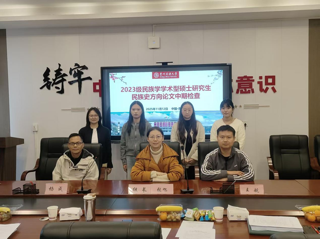2023级民族学研究生毕业论文中期检查汇报在北校区D412会议室举行。由2023级研究生唐福婷、彭丹、王琪、杨集情4位同学进行汇报。张旭副教授任考核组组长,杨成教授、王航副教授为成员,卜妹红老师为教学秘书,2023级、2024级、2025级研究生参加旁听。