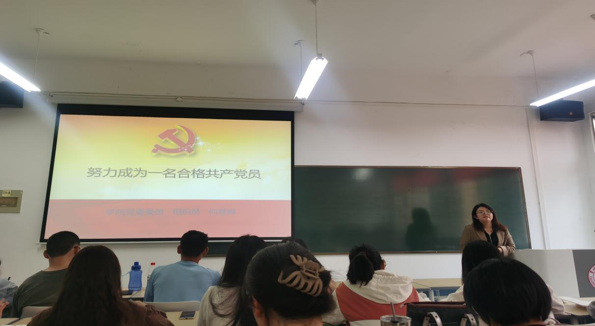 C105教室开展了第67期入党积极分子培训班的第一课。学院党委组织委员何慧琳老师以“努力成为一名合格共产党员”为主题为学员们授课。