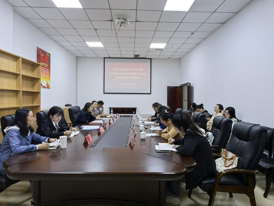 教工党支部与贵阳市文物保护中心党支部在贵阳市文物保护中心会议室签署结对共建协议。贵阳市文物保护中心党支部书记、主任邹玲同志,中心副主任陈婧同志,中心党支部组织委员赵嫚同志,中心党支部学习委员张顺同志,中心党支部宣传委员罗婷同志,中心党支部纪检委员朱梅同志,樱桃视频